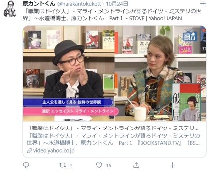 深夜、BS12『BOOKSTAND.TV』では、「職業はドイツ人」の、マライ・メントラインさんとご一緒。