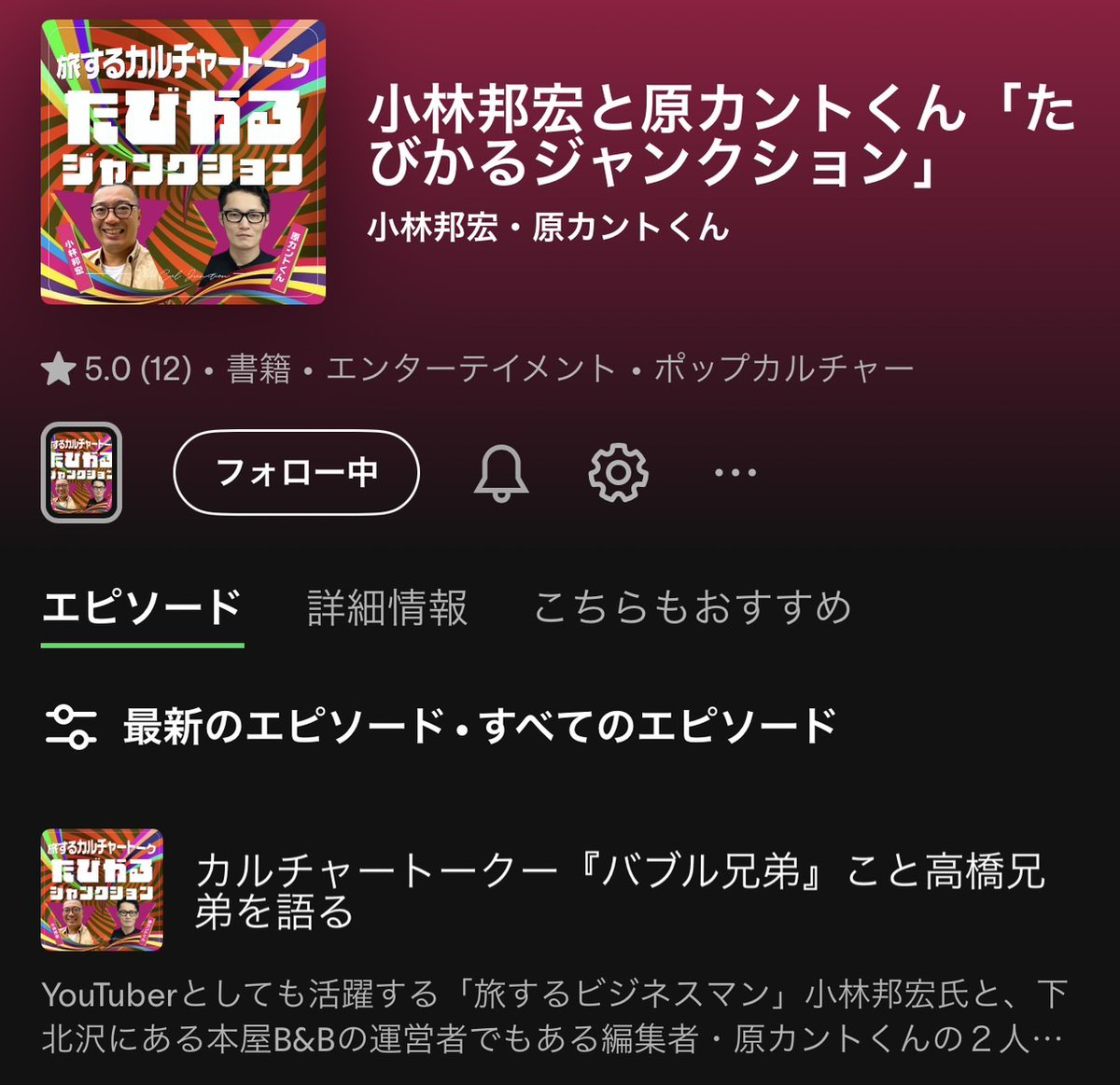 そんなことを考えているうちに、小林邦宏さんとやっているPodcast『たびかるジャンクション』、最新回が配信。