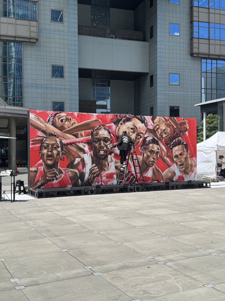 早起きして、TBSに行ったら、なんだかイカした絵が完成しつつあるぞ。