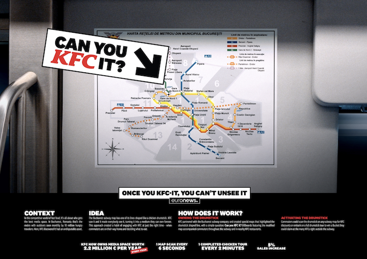 これを使って地下鉄にのるたびにケンタッキーのフライドチキンが食べたくなるよう訴求するユーモアあふれるキャンペーン。